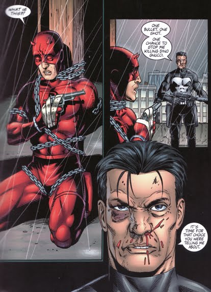 Souhlasím s stosedem, to je ta úžasná scéna, kde by měl Punisher donutit DareDevila ho zastřelit, ale pistole je prázdná. Pokud si z komiksu dobře pamatuji.